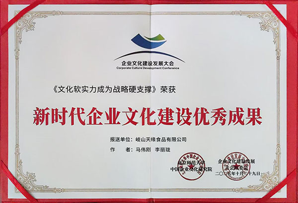 在會議期間,大會組委會委托張培合會長作為代表,發(fā)布了“新時代企業(yè)文化建設(shè)典范”名單。岐山天緣食品有限公司黨建引領(lǐng)企業(yè)創(chuàng)新發(fā)展和企業(yè)文化建設(shè)的典型案例,在全國近萬家申報企業(yè)中脫穎而出,一舉斬獲兩項全國性殊榮——新時代企業(yè)黨建品牌創(chuàng)新案例、新時代企業(yè)文化建設(shè)優(yōu)秀i成果!張培合會長在與岐山天緣公司黨支部副書記、董事長助理馬偉剛交流中,特別對岐山天緣黨支部書記、董事長張宗科帶領(lǐng)天緣人創(chuàng)新、務(wù)實、進取的奮斗表示了充分的肯定和贊許;他希望并祝福天緣人在張總帶領(lǐng)下踔厲奮發(fā)、再創(chuàng)輝煌。