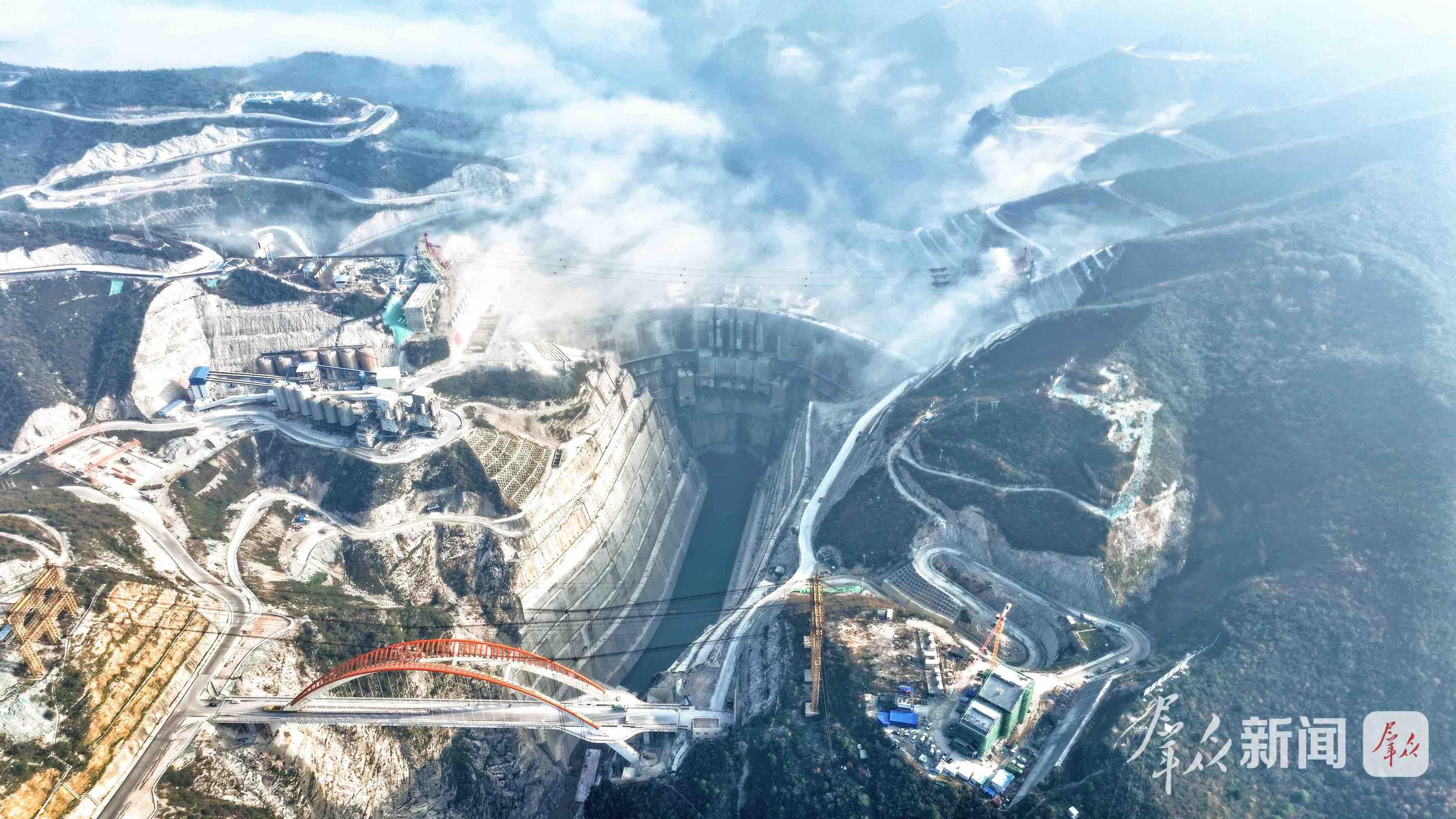 11月4日,走進東莊水利樞紐工程建設(shè)現(xiàn)場,一座230米高的混凝土雙曲拱壩巍然屹立。