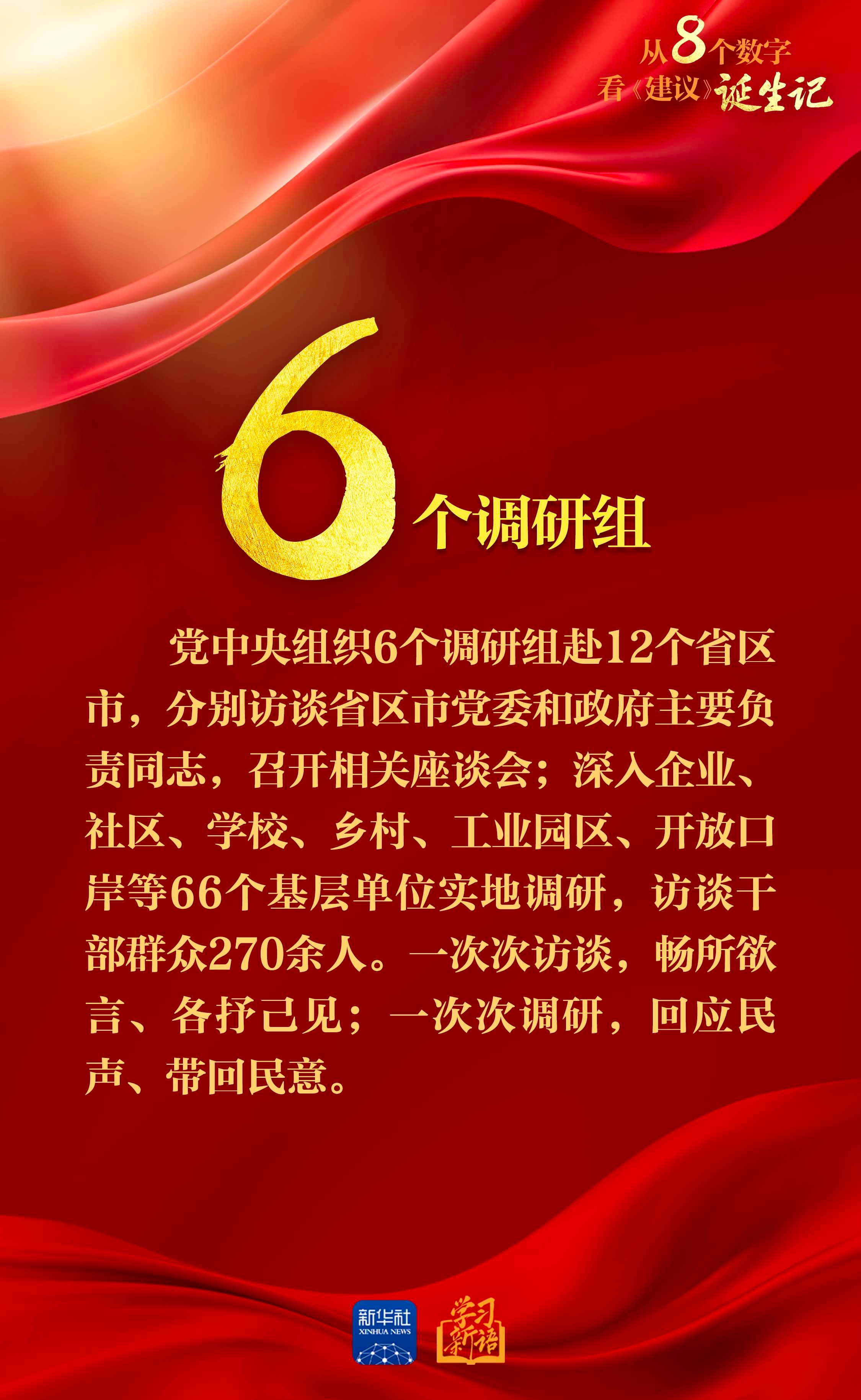 今天,新華社播發(fā)通訊《為基本實現(xiàn)社會主義現(xiàn)代化奠定更加堅實的基礎(chǔ)——<中共中央關(guān)于制定國民經(jīng)濟和社會發(fā)展第十五個五年規(guī)劃的建議>誕生記》。通過一組數(shù)字,一起來看這份綱領(lǐng)性文件是如何誕生的。